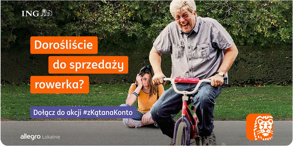 Tak jak trudno oswoić się z myślą, że nasze dzieci powoli przestają być dziećmi, tak często trudno się zdecydować na pozbycie się rzeczy, z których już wyrosły. Na półki, do garderób i piwnic trafia cała historia rozwoju naszych nastolatków. Znajdziemy tam już za małe rowerki i hulajnogi, przykuse stroje i akcesoria niezbędne do różnych zajęć sportowych, i inne atrybuty poszukiwania i odkrywania pasji przez nasze dzieci (bo przecież kto od razu wie, czy porwie go taniec, piłka nożna czy karate). Czy my dorośli dorośliśmy do… sprzedaży rowerka? Z tego życiowego insightu zaczerpnęła akcja #zKątaNaKonto, przygotowana we współpracy z platformą Allegro Lokalnie. Zachęcamy w niej rodziców do sprzedaży rzeczy, z których wyrosły ich nastoletnie dzieci, i przelania uzyskanych w ten sposób pieniędzy na pierwsze konto bankowe podopiecznych – konto Mobi z aplikacją Moje ING. Na sprzedających na Allegro Lokalnie czeka aż do 100 tysięcy Monet Allegro i zwrot prowizji za sprzedaż.