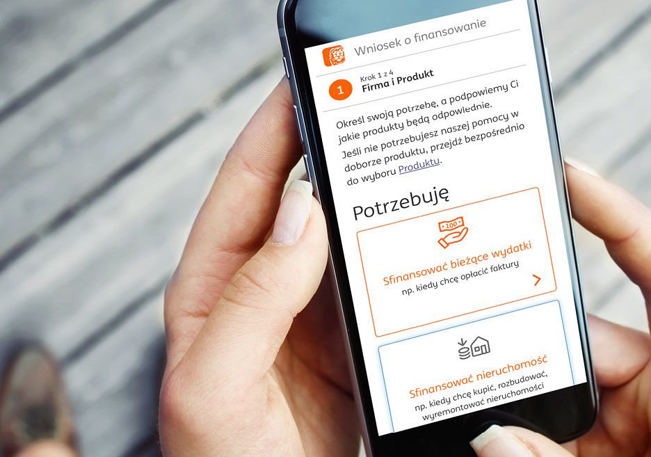 W ramach projektu ING CMS2 udostępniliśmy też wniosek o finansowanie dla klienta zewnętrznego. W nowym wniosku wychodzimy od potrzeby klienta i podpowiadamy, jaki produkt tę potrzebę realizuje. Użytkownik może wygodnie wypełnić wniosek bez względu na urządzenie, z którego korzysta – np. na telefonie.