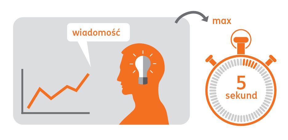 Kiedy przygotowujemy prezentację treści lub danych, spróbujmy to zrobić w ten sposób, aby odbiorca uchwycił sedno naszej wiadomości w czasie krótszym niż 5 sekund!