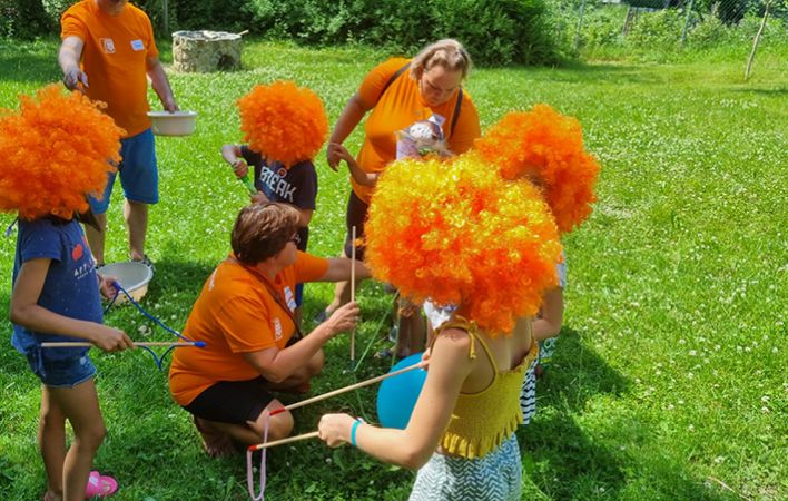 Postanowiliśmy wspólnie z dziećmi powitać wakacje. Zapakowaliśmy do aut sporo rzeczy: hula-hoopy, taczkę, deskorolkę, liny, piłki, rzutki, peruki, balony... Jak było? Bardzo, ale to bardzo aktywnie! Przygotowaliśmy kilka konkurencji sprawnościowych: skoki w workach, tory przeszkód, slalomy, rzuty do celu, jazdę na deskorolce. Był również wspólny czas na placu zabaw i spacer. W ośrodku fundacji zorganizowaliśmy zabawy kreatywne, a po obiedzie puszczaliśmy razem bańki i robiliśmy zdjęcia a‘ la fotobudka. Mieliśmy też przygotowane upominki dla dzieci, które rozdaliśmy im na zakończenie naszego pobytu.