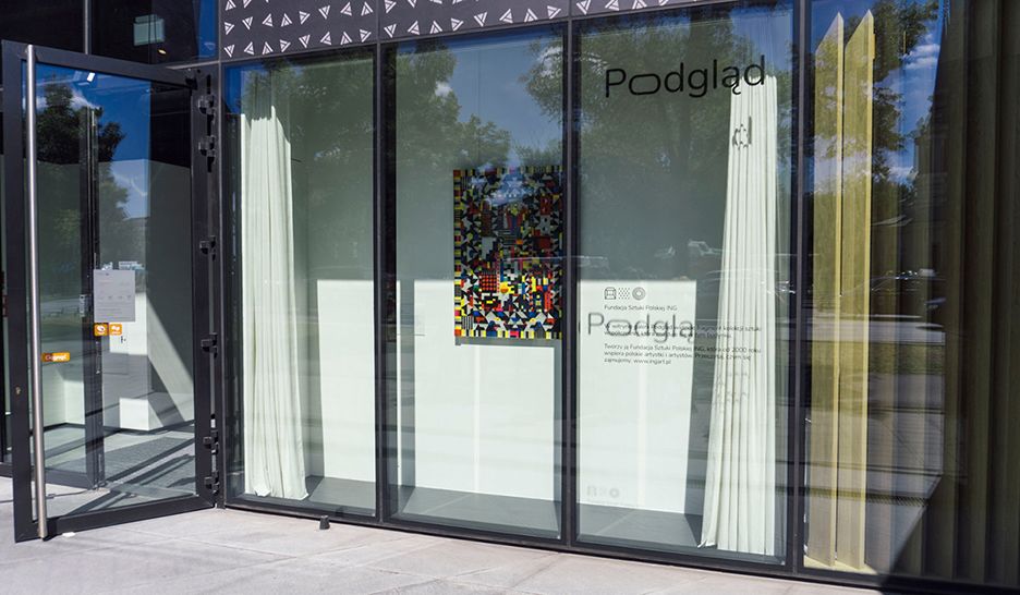 Otworzyliśmy wyjątkowe miejsce – galerię jednej pracy, czyli Podgląd. Najmniejsza galeria sztuki w Warszawie mieści się w witrynie naszej siedziby. Można w niej zobaczyć mały fragment kolekcji Fundacji Sztuki Polskiej ING, która znajduje się w biurach banku.