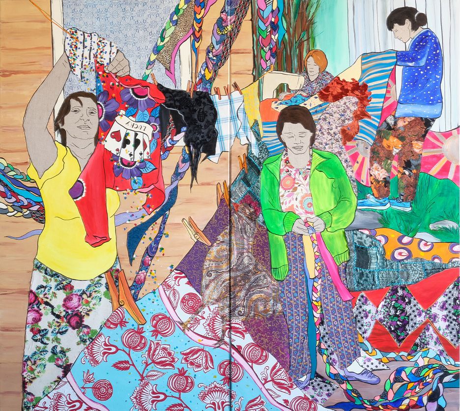 Siostry (Phenia), 2019, akryl, tkanina, płótno, 180 x 200 cm (zdjęcie pracy artystki w siedzibie ING)