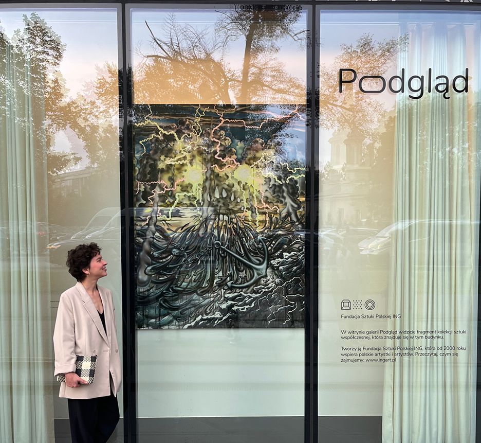 We wrześniu w Podglądzie zagościł obraz „Burza” Hanny Krzysztofiak. Praca została wyróżniona Nagrodą Główną Fundacji 2020 przyznawaną podczas Warsaw Gallery Weekend, a do prezentacji w galerii została wybrana w głosowaniu spośród wszystkich dzieł wyróżnionych Nagrodą Główną Fundacji przez pracowników naszego banku.