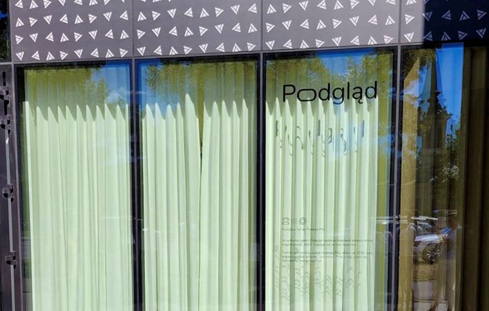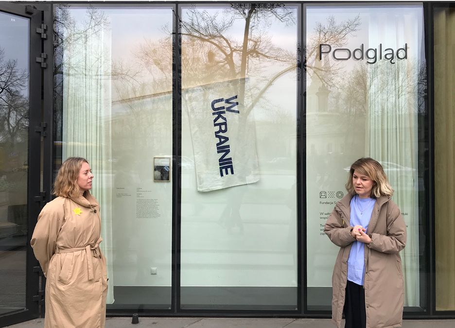 W kwietniu i maju nasi pracownicy, klienci oraz przechodnie mogli podejrzeć w galerii dzieło Yulii Krivich – najnowszy nabytek fundacji. Na wystawie pojawiły się flaga i zdjęcie, symbole happeningu zorganizowanego przez artystkę w 2019 roku pod Dworcem Zachodnim – na końcowym przystanku podróżnych ruszających ze Wschodu do Warszawy. Krivich przed budynkiem dworca pojawiła się z flagą z napisem „W Ukrainie”. Ten prosty gest sprowokował ogólnonarodową dyskusję dotyczącą historycznego kontekstu użycia przyimków „w” lub „na” Ukrainie oraz tego, jak charakter relacji polsko-ukraińskich ujawnia się w języku.