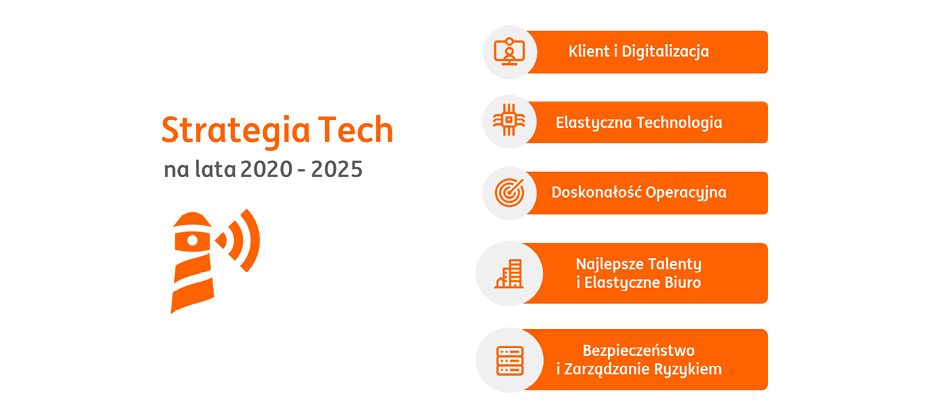 Strategia Tech jest istotną częścią strategii naszego banku. Jej filary budują mocny fundament naszej strategii utrzymania pozycji lidera na rynku. Przypomnijmy, z czego się składa.