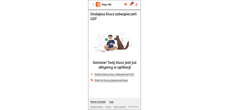 Drugie wprowadzane rozwiązanie jest nowatorskie w polskiej bankowości. Pod koniec czerwca udostępniliśmy klientom możliwość zarejestrowania w Moim ING sprzętowego klucza zabezpieczającego w standardzie FIDO2, popularnie nazywanego kluczem U2F. Jako pierwszy bank w Polsce udostępniliśmy taką funkcjonalność również w naszej aplikacji mobilnej. To klient będzie decydować, czy chce w ten sposób zabezpieczyć zarówno logowanie w przeglądarce, jak i w aplikacji mobilnej, czy tylko w jednym z tych kanałów. Klucze takie można podłączać bezpośrednio do komputera lub smartfona (np. przez złącza USB-A czy USB-C), jak również zbliżeniowo z wykorzystaniem funkcji NFC.