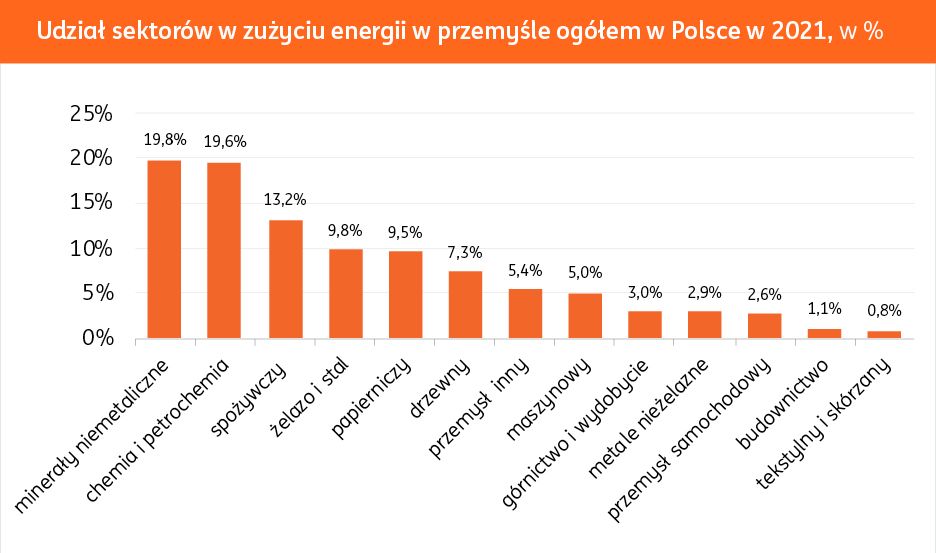 Skala wstrząsu na poziomie firmy była m.in. uzależniona od energochłonności procesów produkcyjnych i wykorzystywanych nośników energii. Firmy podjęły wysiłki na rzecz poprawy efektywności energetycznej (aby zużywać mniej energii w działalności produkcyjnej) lub budowy własnych odnawialnych źródeł odnawialnych (próba częściowego uniezależnienia się od energii z sieci). Około 80 proc. energii ogółem w polskim przemyśle zużywa łącznie sześć sektorów: minerały niemetaliczne, chemia i petrochemia, spożywczy, żelazo i stal, papierniczy i drzewny.