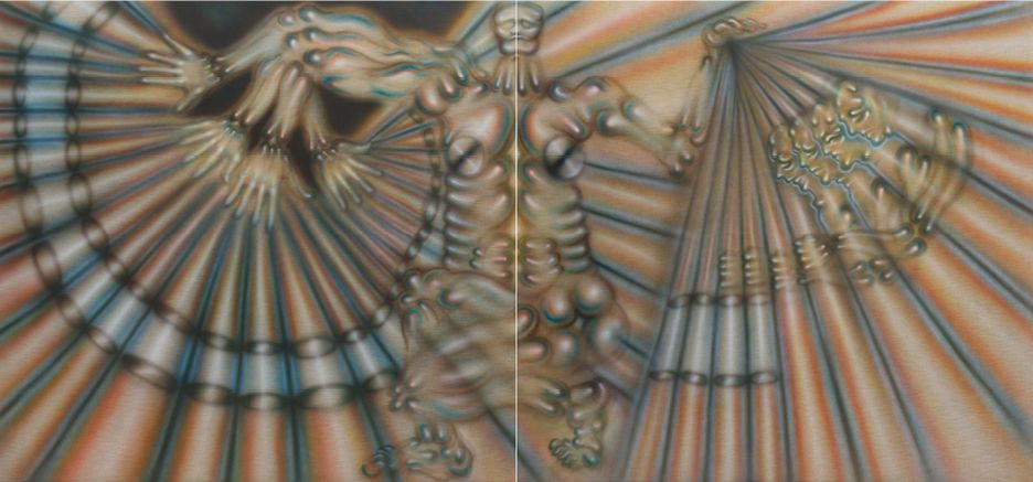 Veronika Hapchenko, demeter, after Ivan Lytovchenko, 2023, akryl, tusz, płótno, 160 x 335 cm