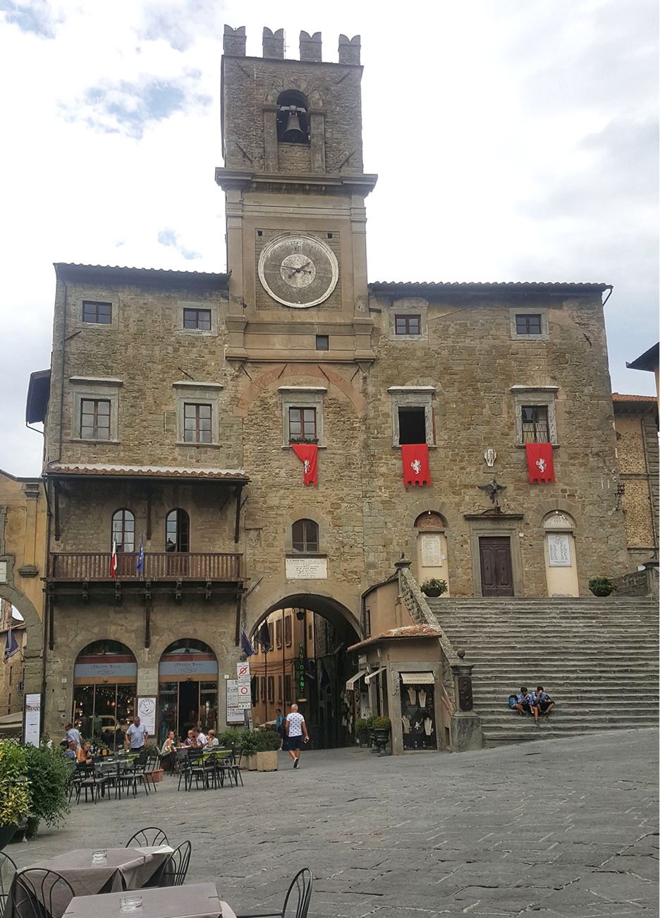 Życie uliczne Cortony możemy obserwować wieczorami na Piazza della Repubblica, kiedy mieszkańcy wychodzą z domów, wybierają się do restauracji lub na porcję gelato, grają, śpiewają i tańczą. Koniecznie trzeba posiedzieć na 24-stopniowych schodach, które zwane są żartobliwie letnim salonem miasta i prowadzą do wybudowanego w XIII wieku, górującego nad placem ascetycznego ratusza z wieżą zegarową.
