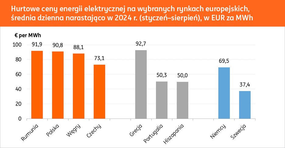 Niestety hurtowe ceny energii w Europie Środkowo-Wschodniej są wysokie. Od początku br. średnia cena energii na rynku spot w Polsce, Rumunii i na Węgrzech wyniosła około 90 euro za MWh, a w Czechach prawie 75 euro. Czeski rynek jest silnie powiązany z niemieckim, gdzie ceny zbliżyły się do 70 euro. Te poziomy cen są podobne niezmienione w stawkach terminowych dla kontraktów baseload na dostawę energii elektrycznej w całym 2025 r. Ceny energii w EŚW stawiają region w podobnej sytuacji jak Grecję z cenami dwukrotnie wyższymi niż w Hiszpanii czy Portugalii, nie wspominając o Szwecji, kraju cieszącym się najniższymi cenami energii elektrycznej w Europie ze względu na unikalne zasoby naturalne i miks energetyczny.