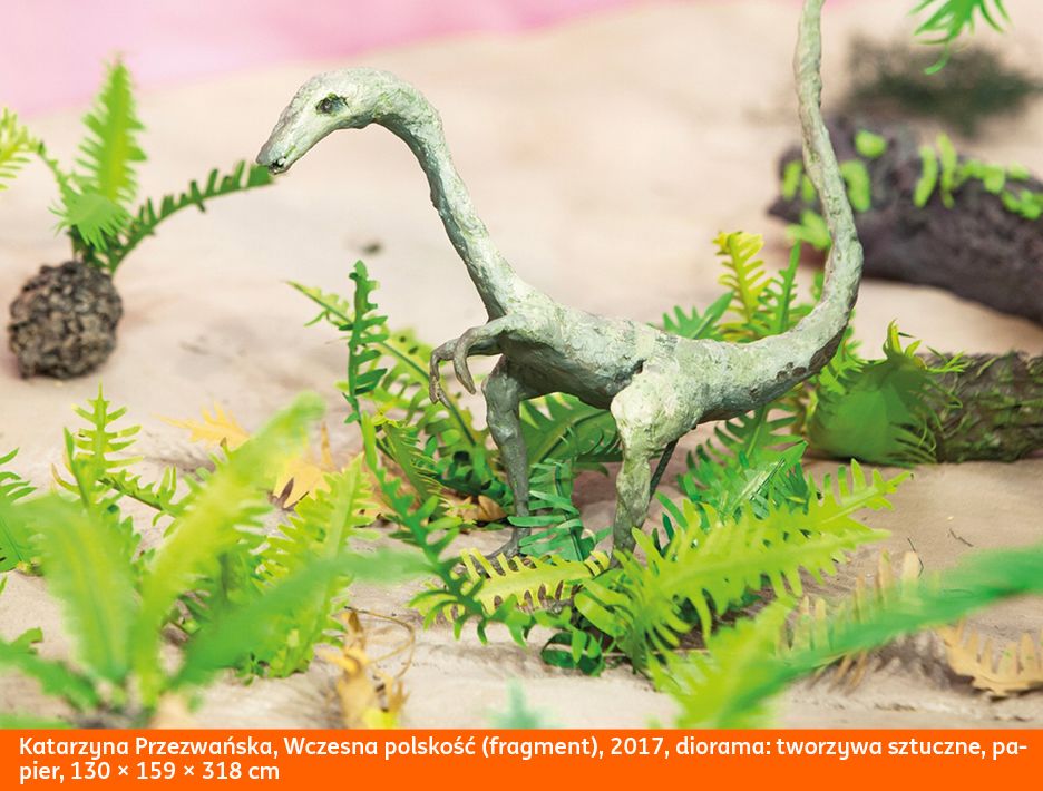 Podczas pierwszej edycji Nagrodą Fundacji wyróżniliśmy Katarzynę Przezwańską, a w kolekcji znalazła się jej praca „Wczesna polskość”, która podczas WGW prezentowana była w galerii Dawid Radziszewski. Artystka w swojej twórczości często podejmuje kwestie fenomenów geologicznych i procesów zachodzących w świecie roślin. Jej wieloletnie fascynacje przyrodą i historią Ziemi przeplatane analizami kontekstu narodowego oraz wizualnych form tożsamości przybrały formy dioramy. Artystka postanowiła w swoich poszukiwaniach cofnąć się o dwieście milionów lat, gdy ziemie polskie znajdowały się bliżej równika. Polskość w czasach jury reprezentuje roślinność tropikalna, a zamiast dumnego orła – małe dinozaury. Pracę można oglądać w witrynie oddziału ING na dworcu Warszawa Centralna.