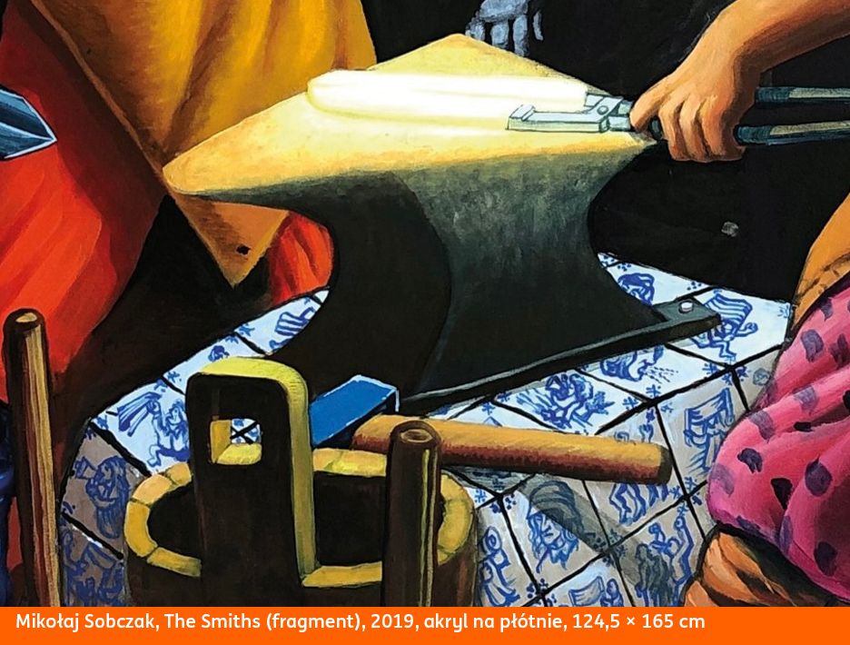 W kolejnym roku jury nagrodziło Mikołaja Sobczaka, który od wielu lat w swojej twórczości obnaża politykę konstruowania zbiorowej pamięci oraz tendencji do wymazywania wkładu i historii grup mniejszościowych z oficjalnej narracji. W pracy „The Smiths” włączonej do kolekcji Fundacji artysta igra z konwencją malarstwa historycznego. Wykorzystując kompozycję grafiki Artura Grottgera, zamienia anonimowych kowali w wizerunki osób ważnych dla ruchów wolnościowych i queer. Do kolekcji trafił również ceramiczny obiekt „Snails Riot I”, w którym artysta portretuje aktywistki ruchów wolnościowych i queer. Obraz prezentujemy w naszej siedzibie, a wazę w Galerii Podgląd, witrynie dostępnej przez 24 godziny w budynku Plac Unii.