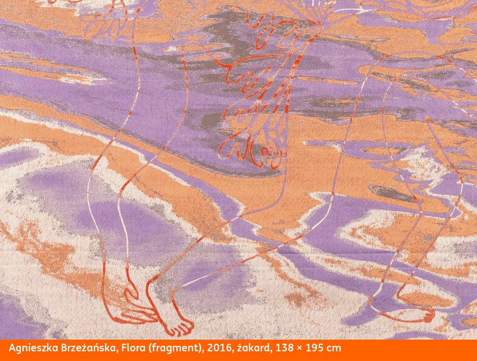 W tym roku kolekcję Fundacji wzbogaciły dwie prace Agnieszki Brzeżańskiej, stworzone specjalnie na wystawę „Boginki” w BWA Warszawa. Pierwsza z nich to żakardowa tkanina zatytułowana „Flora”. Pośród wielobarwnych fal dostrzec można kobiecą sylwetkę w plątaninie motywów roślinnych. Sekretne siły, jakimi mogą być żywioły, oraz energia witalna to tematy, które artystka często porusza w swojej twórczości. Drugą pracą jest ceramiczna waza z powielonym wizerunkiem kobiecych piersi. Forma inspirowana jest motywami, które przewijają się w wielu kulturach: od łużyckiej po prekolumbijską. Tkaninę zobaczycie w naszej siedzibie w budynku Plac Unii w Warszawie, a ceramikę na indywidualnej wystawie artystki jesienią w Muzeum Warszawy.
